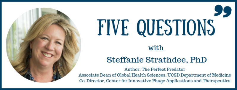 We were excited to learn more about this new book, The Perfect Predator - A Scientist’s Race to Save Her Husband from a Deadly Superbug by Steffanie Strathdee and Tom Patterson, both renowned scientists at the University of California, San Diego. We first became aware of Dr. Strathdee though Twitter (@chngin_the_wrld) where she routinely highlights global health issues, including antibiotic resistance. So, when we heard about their first-hand experience in fighting a deadly superbug, we knew we had to interview Steffanie and learn more!