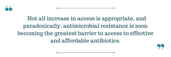 However, not all increase in access is appropriate, and paradoxically, antimicrobial resistance is soon becoming the greatest barrier to access to effective and affordable antibiotics.