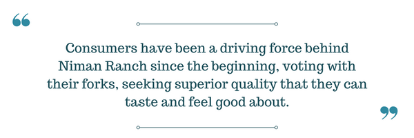 Consumers have been a driving force behind Niman Ranch since the beginning, voting with their forks, seeking superior quality that they can taste and feel good about. Every dollar is supporting our growing network of family farmers and ranchers who raise their livestock in a humane and sustainable way without the use of antibiotics.