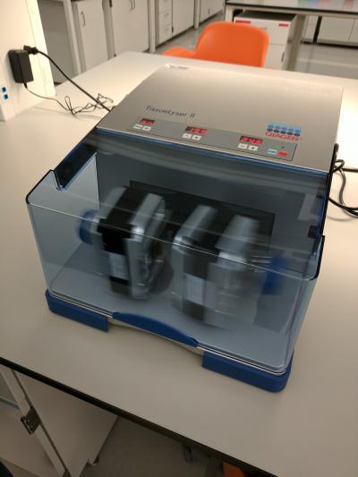 Step 4: The bacteria samples are then put in the Tissuelyser which shakes up the bacteria at a very fast speed to break up the cells and prepare for molecular analysis.