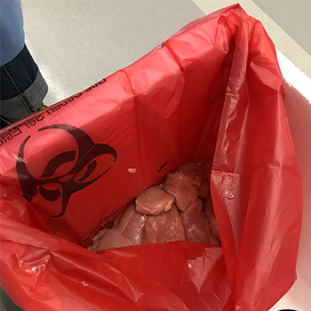 Step 2: Our lab receives more than a hundred packages of chicken per month, which we then enrich in order to find our target bacteria.