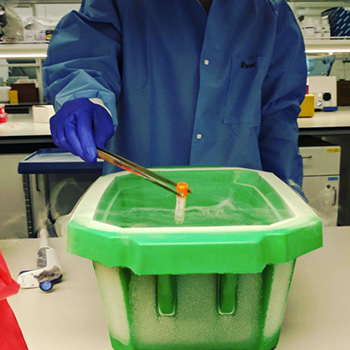 After we’ve done all this work, we want to create a databank of each isolate, so we instantly freeze some of our purified bacteria in a liquid nitrogen bath to preserve them for future analyses (kind of like they did to Austin Powers -- yeah baby!).