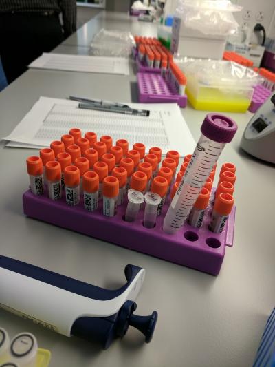 Step 4: The bacteria samples are then put in the Tissuelyser which shakes up the bacteria at a very fast speed to break up the cells and prepare for molecular analysis.