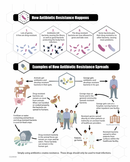 A multi-pronged approach is necessary. Appropriate antibiotic use in people and food animals is essential. These drugs should be used when necessary, for the right dose and duration. Everyone has a role to play in reducing use.